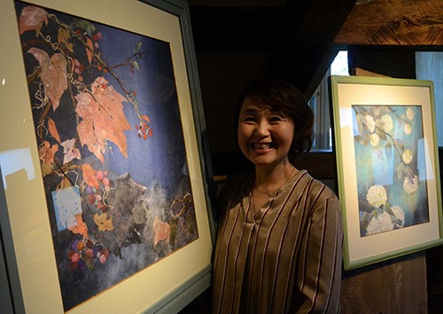 北欧舎で作品展 和紙絵作家、西村さん(2019-10-06)