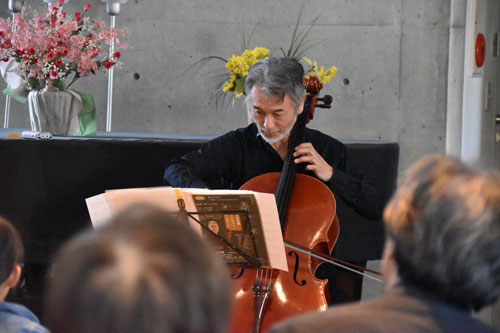 [写真/無伴奏でチェロを演奏した毛利氏 ]