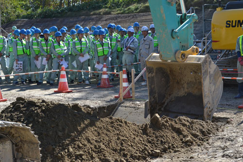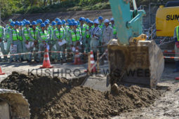 [写真/釧路西IC―阿寒IC間の工事現場を見学する釧路工業高校の生徒ら ]
