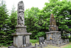 [写真/厚床会館前に建立されている、かつての馬産地を示す顕彰碑と馬頭観音像 ]