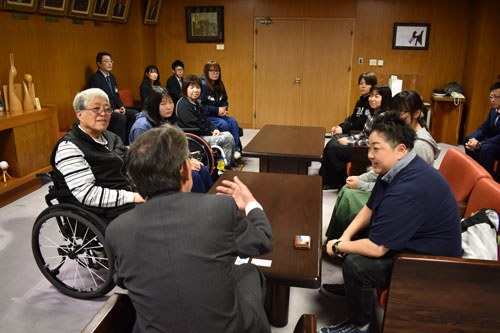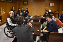 [写真/蝦名市長と歓談するグレイスの選手たち ]