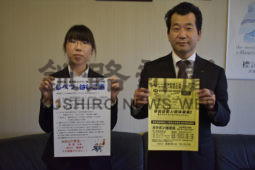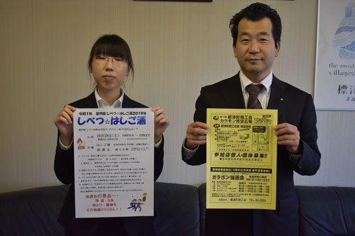 [写真/チラシを手に参加を呼び掛ける標津町商工会職員 ]
