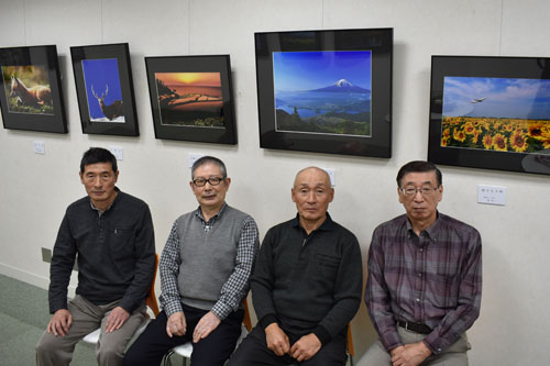 [写真/展示会場でフォトサークル・ウイングのメンバー(NHK釧路放送局ギャラリー) ]