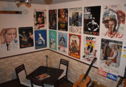 [写真/懐かしい映画のポスターがズラリと並ぶ会場(アコースティックカフェHOBO.) ]