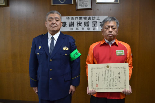 コンビニ従業員 小山さんに感謝状 特殊詐欺被害防ぐ (2019-10-22)