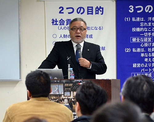 [写真/講義する眞鍋社長 ]
