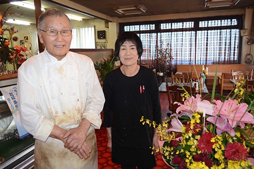 [写真/最後の営業も通常通り―。店内で上杉さん夫妻 ]