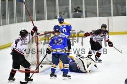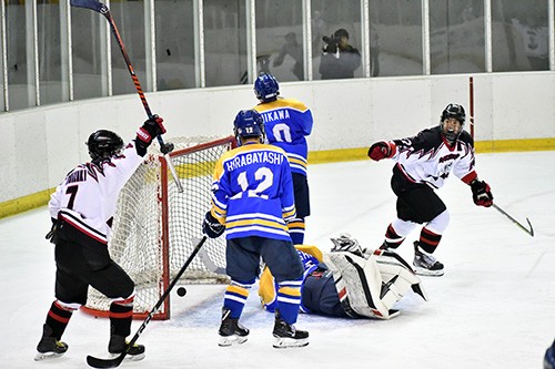 [写真/【決勝、武修館―釧江南】中盤から攻撃力が爆発。ダメ押しの5点目を決める武修館の根本(右端) ]