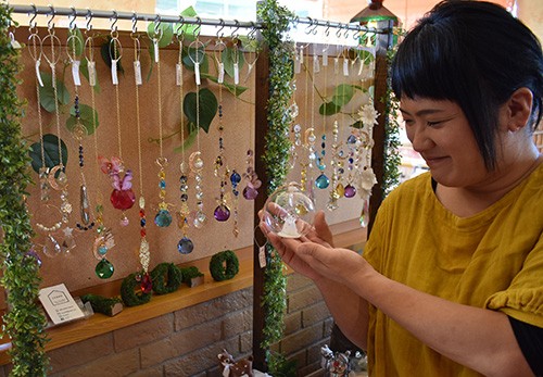 [写真/作品を手に佐藤さん(カフェ・ピシュ) ]