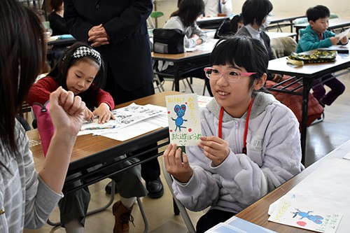 [写真/ネズミの年賀状イラストに挑戦した参加者 ]
