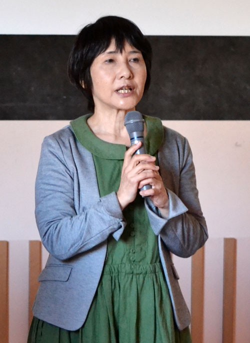 [写真/㊤「生活者の視点で防災を考えてほしい」と武蔵野さん ㊦「日ごろの訓練と連携が大切」と辻井局長 ]