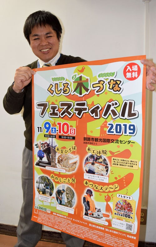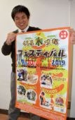 [写真/ポスターで来場を呼び掛ける担当者 ]
