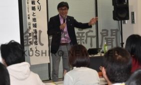 [写真/稼ぐ観光地づくりをテーマに講演する山田さん ]