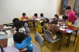 [写真/松尾会長が見守る中で学習に励む児童たち(18日) ]