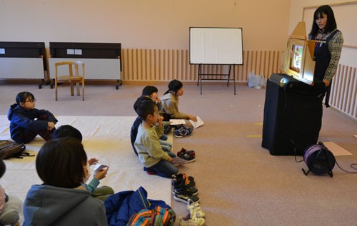 [写真/絵本の読み聞かせに聞き入る参加者 ]
