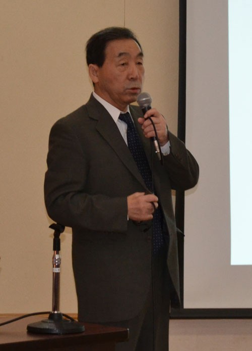 [写真/認知症の対応について講演する高谷センター長 ]