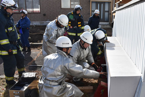 解体中の建物で 被災者救出訓練(2019-11-24)