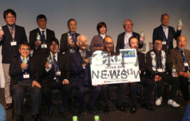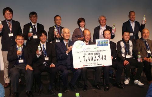 [写真/佐々木社長からの寄付金贈呈式。活動報告する団体の代表も加わり寄付に感謝 ]