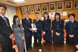 [写真/派遣される生徒4人と蝦名市長ら ]