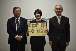 [写真/札幌国税局長賞に選ばれた只野さん(中央)と小笠原署長(右)、釧路商業高校の小笠原茂美校長 ]