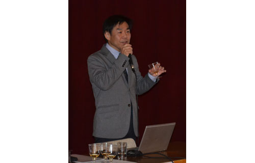 [写真/ウイスキーの製造や今後の展望を語った立崎所長 ]