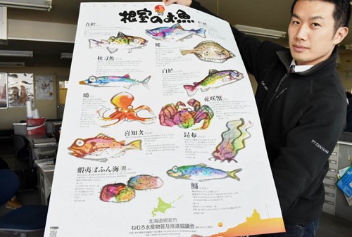 [写真/イワシを加え、リニューアルした「根室のお魚」ポスター ]