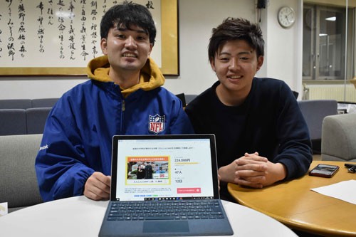 [写真/クラウドファンディングでの支援を呼び掛ける藤巻さん(左)と越膳さん ]