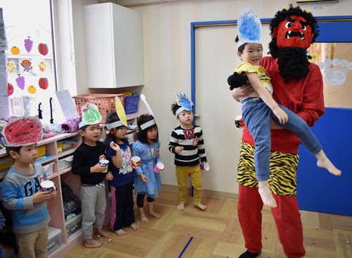 [写真/鬼の登場にさまざまなリアクションを見せる3歳児 ]