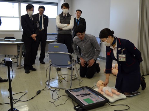 釧公大生開発システムで胸骨圧迫訓練(2020-02-13)