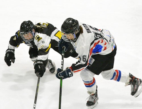[写真/10日の地元公式戦でしのぎを削るDaishinと釧路ベアーズ ]