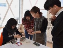 [写真/銅版画の作業手順を教えるマシオンさん(右から2人目) ]
