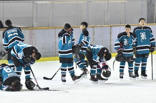 [写真/延長、逆転負けした釧路町遠矢・釧路町別保・標茶。試合後、スタンドへのあいさつを終えるや泣き崩れる選手も ]