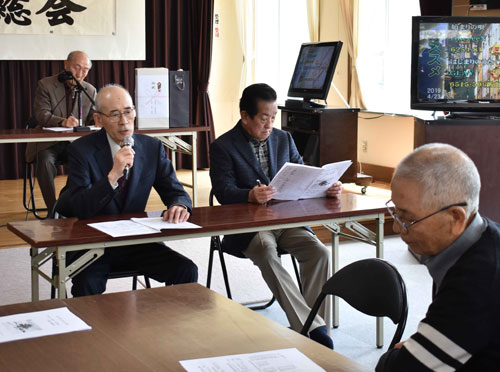 [写真/新年度事業について説明する美谷会長(美原宝樹会) ]