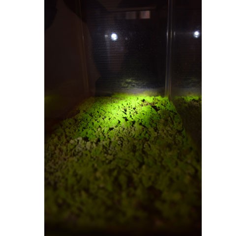 [写真/光を当てると緑色に輝くヒカリゴケ ]