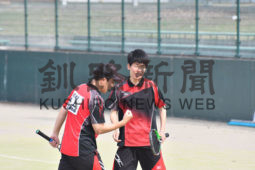 [写真/男子の部決勝で、同門対決を制した釧江南の小澤・村上組 ]