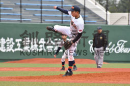 [写真/【準々決勝、釧北・釧美原・釧共栄―釧大楽毛・釧音別・釧阿寒】初戦に引き続き最終回、抑えで登板し役割を果たした釧北・釧美原・釧共栄の三村 ]