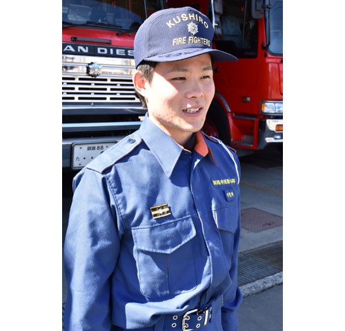 [写真/「社会人としての基本を学ぶことができた」と消防団員の経験を振り返る宇賀神さん ]