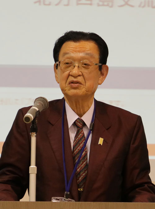 [写真/今期日本側第1陣となる国後島訪問団長としてあいさつする大塚さん ]