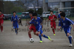 [写真/【K1第1節、釧青陵―厚岸・厚岸真龍・浜中散布】相手をかわそうとする釧青陵のMF池本(中央) ]