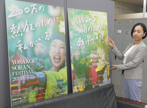 [写真/6月5日からのYOSAKOIソーラン祭りをPRするポスター。オープニングでは令和の新曲も披露される ]