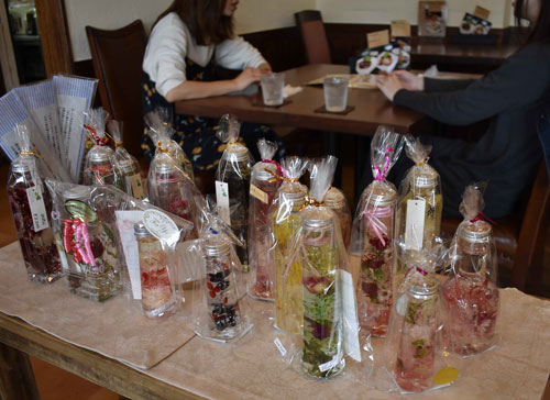 [写真/プレゼント用のハーバリウムが並ぶ店内(珈琲堂リノ) ]