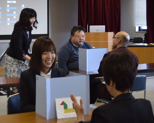 [写真/会話だけでパズルを完成させるゲームに挑む参加者 ]