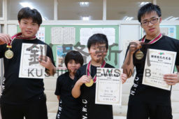 [写真/根室の教室から出場した(左から)菊地和さん、空々ちゃん、輝君、高橋さん ]