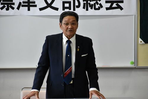 [写真/あいさつをする福沢支部長 ]