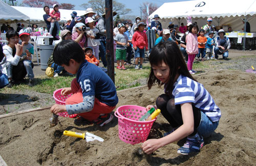 [写真/2017年の桜まつりで潮干狩りを楽しむ子供たち ]