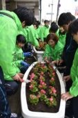 [写真/ベゴニアの花200株を植栽した参加者 ]