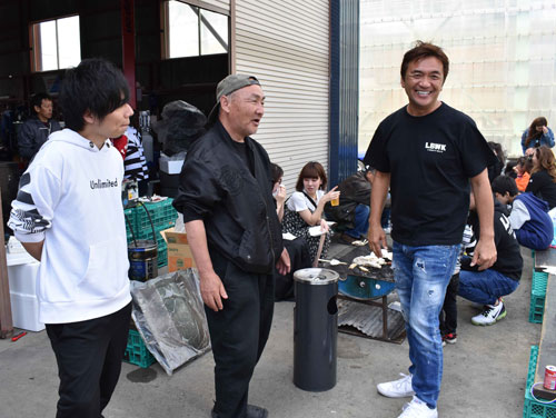 [写真/カスタムカー愛好者らと談笑する加藤CEO(右) ]