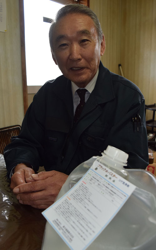 [写真/労働時間短縮に貢献する洗剤を開発した鈴木社長 ]