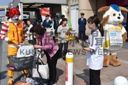 [写真/「ほくとくん」と「ドナルド」も駆け付けた街頭啓発 ]