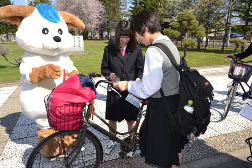 [写真/中標津高校で行われた自転車防犯啓発 ]